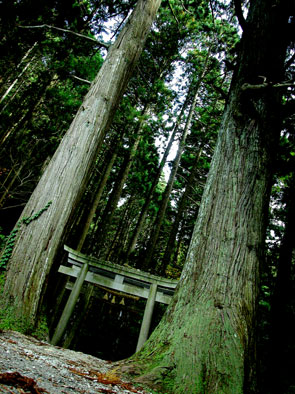 二本の巨大な杉の木を抜け、鳥居をくぐった途端、そこは外界と遮断された別世界だった。