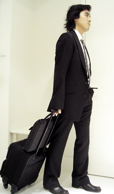 | まずは下の写真をご覧下さい。最近の僕はこんな感じ……。ひどくな〜い? コレー。 背広(古い?)。10年ぶりくらいに着ています。それも連日! こんなアリサマになって改めて思うこと。それは「こんな阿呆な服は世の中に二つとない!」 聞くところによると、世間には「スーツマジック」なる言葉(普段はパッとしない男でも、スーツを着ると何だか格好よく見えちゃう現象)もあるそうですが、そんなのは言語道断、一刀両断、愚の骨頂の馬鹿丸出し。 そこで本日は、このスーツという阿呆な服を検証してみましょう。 1.格好悪い 何が格好悪いってアナタ、シルエットが悪い! 日本人のような胴長短足??それも僕のように尻がでかい人間が着ると、ひどい樽型になってしまって不格好なことこの上ありません。 2.高い ブツクサ言いながら、あちこち探して購入した一着(写真)。「8万円でございます♪」えーーーーっ! ジャケット&ジーンズなら何着買えると思っとるんじゃ! 3.耐久性ない 2〜3日着ると、あっという間に皺が寄ってヨレヨレ ノ ノ。何というお粗末な耐久性! 1年も着たら使い物にならないこと間違いナシ。これってナニ? スーツって使い捨てなの!? 4.わずらわしい 皺になるから乗り物に乗る時はいちいち脱ぐとか、座るときには置くとか、かけるとか……着ている本人より大事にされるってどーゆーこと!? 5.不愉快 暑苦しいし、首締められるし、動きにくいし、不快指数100億ヘクトパスカル。何がイチバン不愉快って、こんなに阿呆臭くて馬鹿丸出しの下らない服だとわかっていながら着ている自分。 6.没個性 街を歩けば、どこを見てもスーツ姿ばっかり。これって絶対気色悪い。しかし、観察してみると、人はスーツを着ている人間に対してどういうワケかあまり警戒心を抱かないようです。一種のIDカードというか、免罪符というか、通行券みたいになっている。顔パスならぬ服パス? 集団に帰属する安心というか、「没個性」の極み。どうやらスーツとは、「個」をその内部に閉じ込めるための牢獄みたいな役割を、自ずと果たしているのかもしれません……。 まぁ、イチバンの悩みはこんなモノでも着こなしちゃう自分自身ってとこでしょうか? (2004年5月31日発行『TALEMARKET vol.17』編集後記より) |