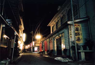 | まずはその名前からしてよい。 温泉津と書いて「ゆのつ」と読む。「湯の津」──つまりは温泉のある港(津)という名である。中国山脈を背にした谷筋にひっそりと息づく、小さくて鄙びた湯治場である。 山陰地方を旅していると、どこに行っても温泉に出くわす。正確に調べたことはないが、二〇キロ四方に一カ所くらいはあるんじゃないかというくらい、そこかしこに点在している。 有名どころは鳥取県米子市の皆生温泉とか、島根県松江市の玉造温泉とか。前者は日本海に面し、後者は宍道湖を望む。名所旧跡、土産物、イベントなどにも事欠かず、観光バスもよく出入りして、それなりに繁盛している。 じゃあ温泉津は? と訊かれたら、そんなものは見たためしがない、と胸を張って答えたい。そもそも観光バスなんか通れるんだろうかと、逆に心配になったりする。 地元の人でもあまり行かない、隠れた秘湯の里なのである。 こじんまりとした木造旅館が建ち並ぶ目抜き通りを、浴衣姿でカラコロと、下駄を鳴らして歩いてみる。 山あいの谷筋を走る狭い街道である。ようよう車が行き過ぎる四百メートル足らずのこの路地が、温泉津のメインストリートだ。 軒行灯の灯りがともり、「あんま」と書かれた古びた看板が風に揺れる。 軒を連ねるのは、明治から大正、昭和初期にかけて建てられた木造二階、三階建ての古びた旅館ばかり。その合間に、これまた古くて小さな土産物屋が点在している。 西に向かってしばらく歩くと、小さな港に出る。外海から深く入り込んだ、静かな入り江だ。小さな漁船が数隻停泊し、鳶が所在なく飛んでいる。 よく言えば穏やか、より正確には寂れた風情のこの入り江も、かつては山陰地方を代表する活気溢れる港だったと聞く。 日本でも有数の銀の採掘地であった石見銀山は、ここからほど近い。十六世紀半ば、石見銀山で採れた銀は「銀山街道」と呼ばれる山あいの筋道を通って温泉津に運ばれ、港から積み出されていった。 江戸時代に入ると、銀の輸送は尾道(広島県)を経由するルートに変わったものの、温泉津は銀山で消費される物資の水揚げ港として大いに賑わったという。江戸時代中期以降、銀山は徐々に衰退の兆しを見せ始めるものの、北前船の寄港地として、温泉津の繁栄は続いた。米や塩、海産物など、様々な荷を載せた百石、五百石の廻船がひっきりなしに出入りし、最盛期には二十軒以上の廻船問屋があったという。 傾いた陽が山の背に隠れると、小さな港はもう早い眠りについた。人っ子一人、仔猫一匹通らなくなった入り江に、下駄の音がうら寂しく響く。不意に出たくしゃみは、自分でもびっくりするくらい大きく、長く尾を引いた。